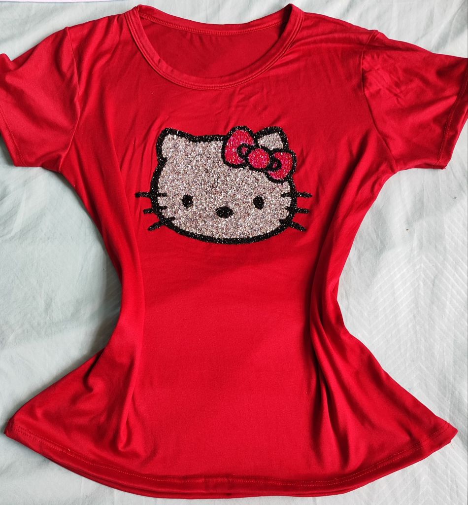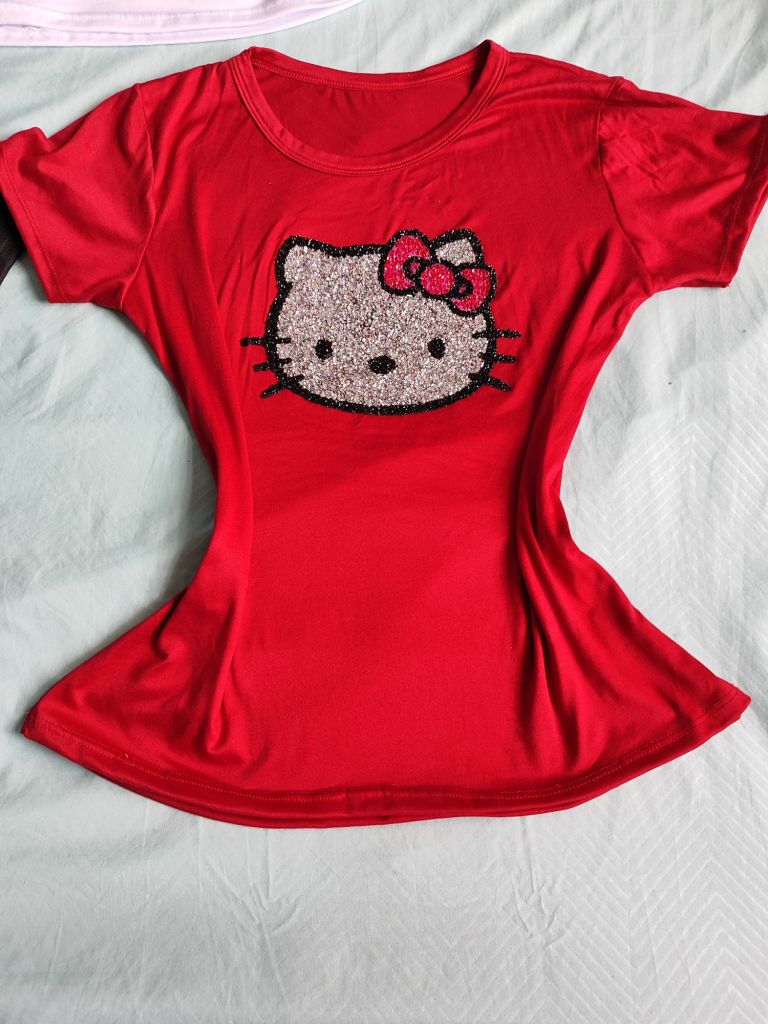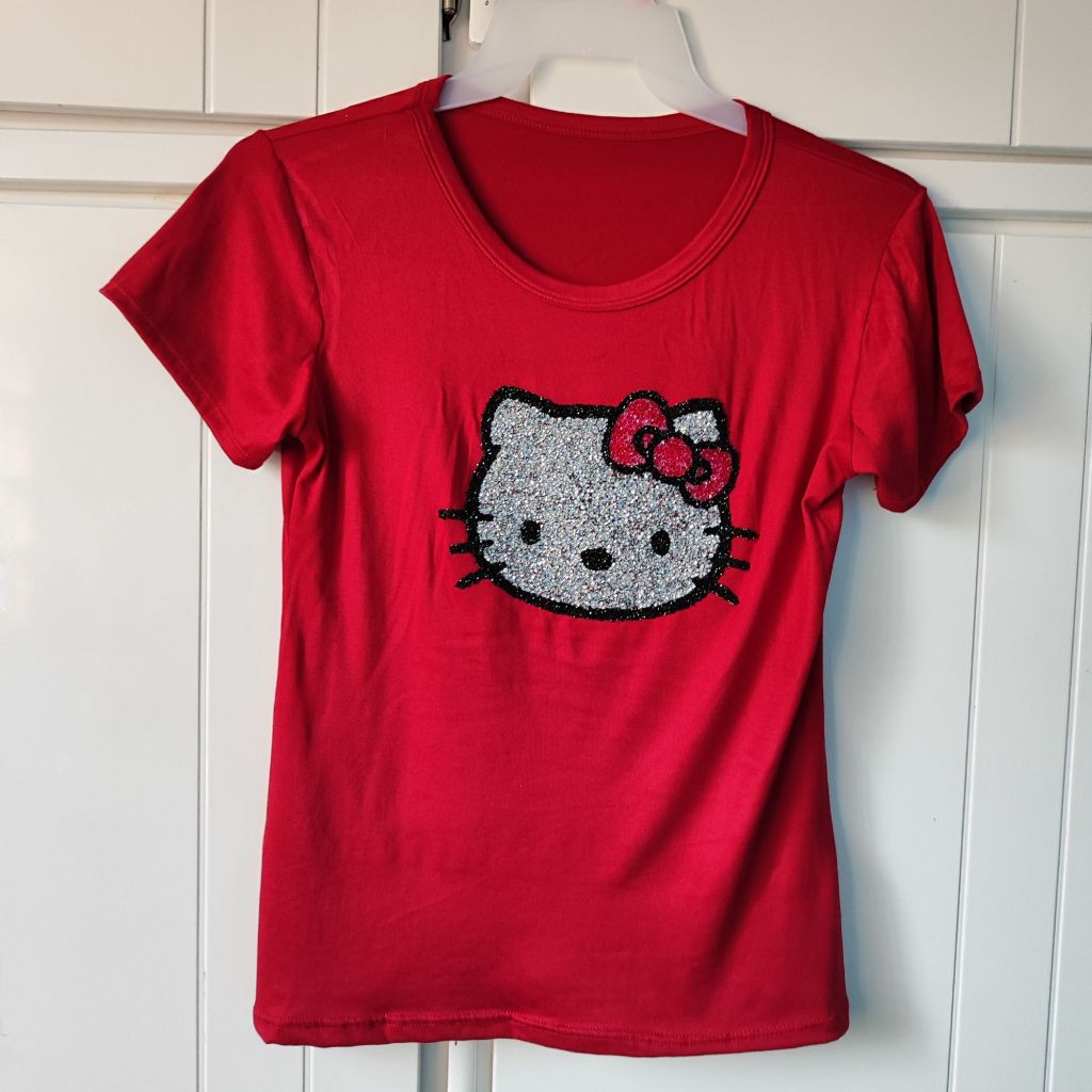 Blusa unitalla color rojo disponible con figura de Kitty en pedrería. WhatsApp pedidos al 7471042145 . Precio especial 200 pesos. Puedes pagar en efectivo o transferencia
